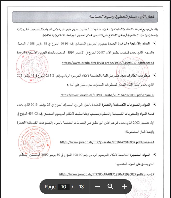 https://www.joradp.dz/FTP/jo-arabe/2021/A2021015.pdf?ino=15🟥 المجال الرابع: السلع التي يتطلب استيرادها رخصة خاصة